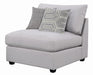 Ver todos los detallesWith a simple silhouette, this modern armless chair showcases contemporary design. Great for a neutral or colorful space, the light grey fabric uph...